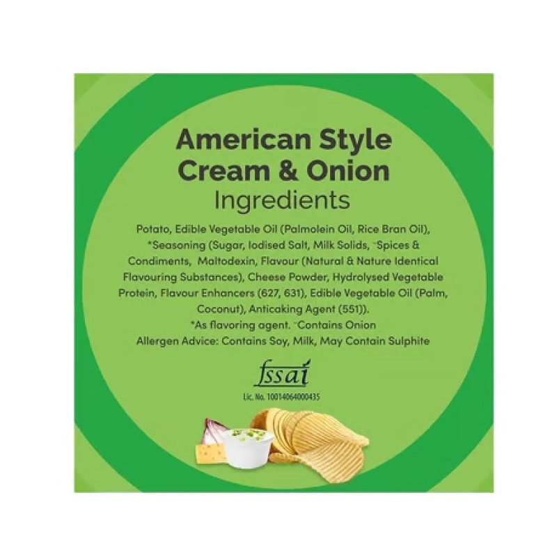 The American style cream and onion chips are topped with an exquisite blend of delicious flavours.