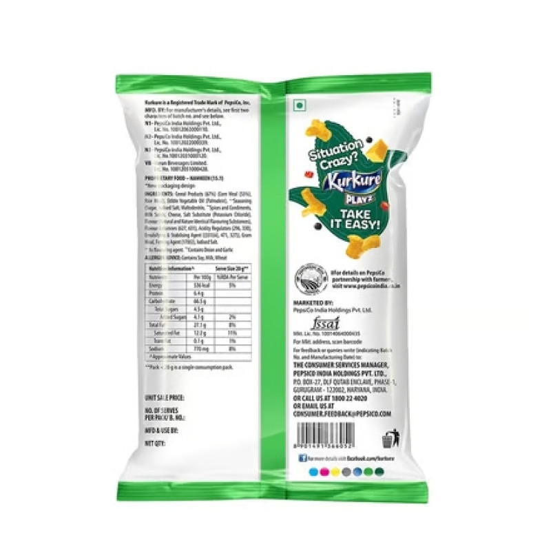 Kurkure is a perfect 'namkeen' which makes one fun-loving and quirky. Made with trusted kitchen ingredients, it is a perfect teatime snack. Kurkure Puffcorn has an immense flavour of corn mixed with butter and a tinge of spices. It has a puffy texture and simply melts in the mouth.