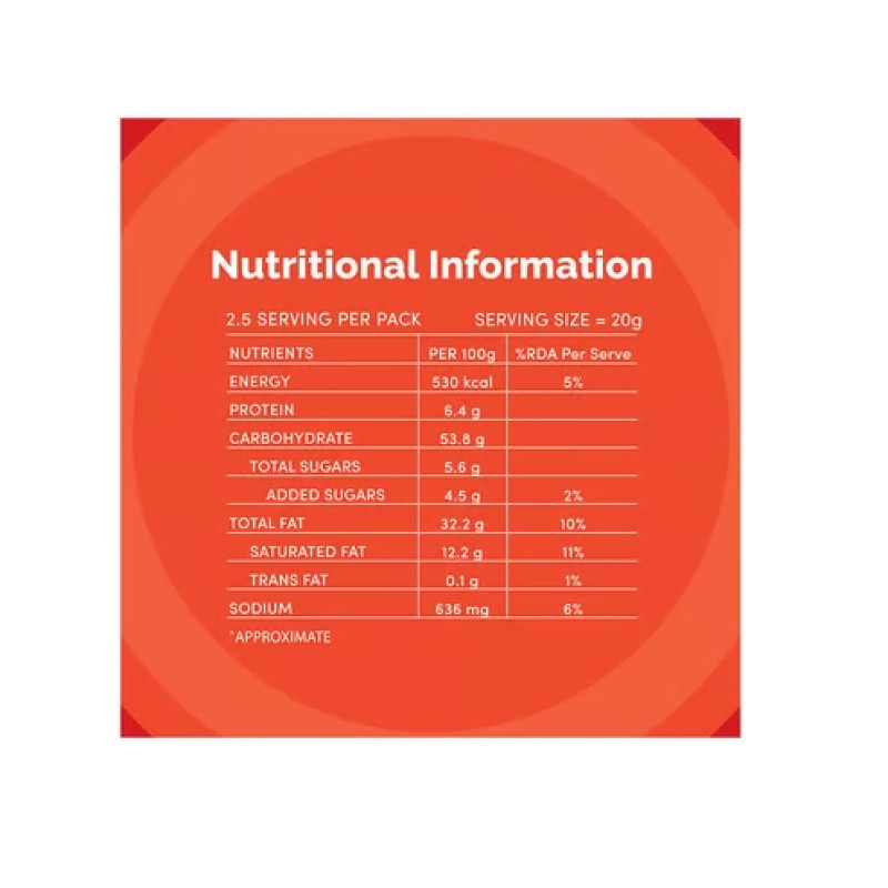 Get transported to a world of tangy flavour with Lay’s Spanish Tomato Tango! Seasoned with a blend of exquisite flavours and spices, these chips sure have some character! Travel to a world of exquisite tastes and bursting flavours and savour the exciting taste of these one-of-a-kind chips! Lay's Spanish Tomato Tango chips are perfect for any occasion. From the quick snack breaks at work, to the impromptu get-togethers, this snack is perfect to binge on.