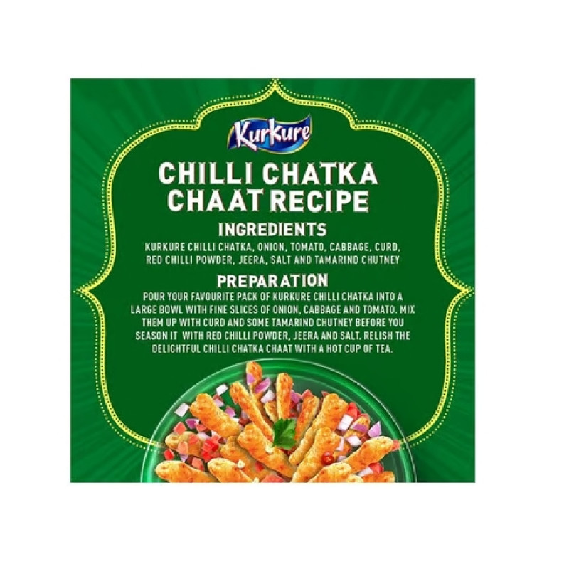 Enjoy a burst of flavour with every bite of Kurkure Chilli Chatka Chips! Your taste buds are in for a ride with the exciting Kurkure Chilli Chatka Chips! These delicious bites will spice up your day with vibrant bursts of Chilli Chatka flavour. Hear the crunch in every bite and savour this tasty treat that embodies the true spirit of India. Kurkure Chilli Chatka is just the perfect companion to the evening cup of chai and can simply be enjoyed on any occasion. Not to mention that it is a family favourite and everyone from your dadi and nani, to your young nieces and nephews will enjoy its irresistible taste.