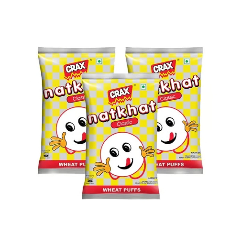 An ideal snack food from crax for a nostalgia trip to the childhood. Enjoy the good old natkhat, a wheat based flavourful puffed snack for anytime snacking with 30%* less fat and trans-fat free.