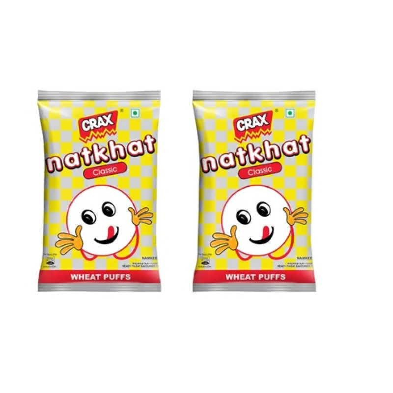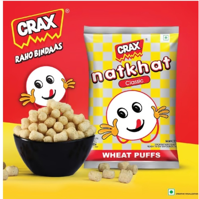 An ideal snack food from crax for a nostalgia trip to the childhood. Enjoy the good old natkhat, a wheat based flavourful puffed snack for anytime snacking with 30%* less fat and trans-fat free.