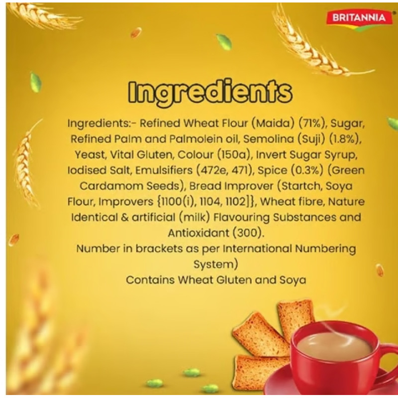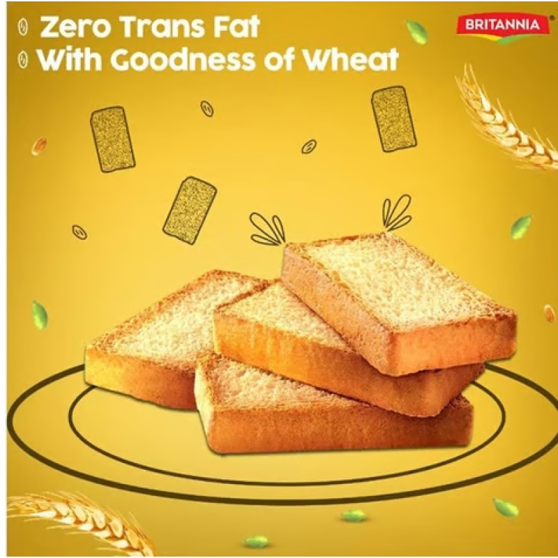 Premium Bake Rusk with goodness of wheat is been a traditional tea companion and is loved by many. Britannia Toast Tea Premium Bake Rusk is as crispy as your traditional one, but with a hint of elaichi and right amount of sweetness, it's taste will leave you amazed. Britannia Toast Tea Premium Bake Rusk for long has been a part of every home, sharing those moments of joy.