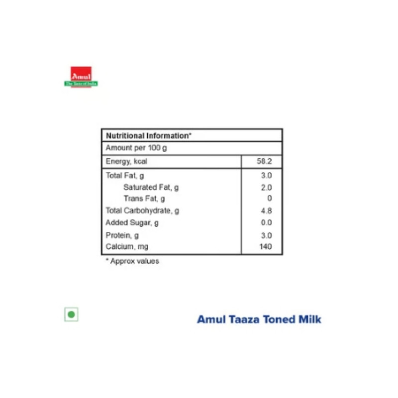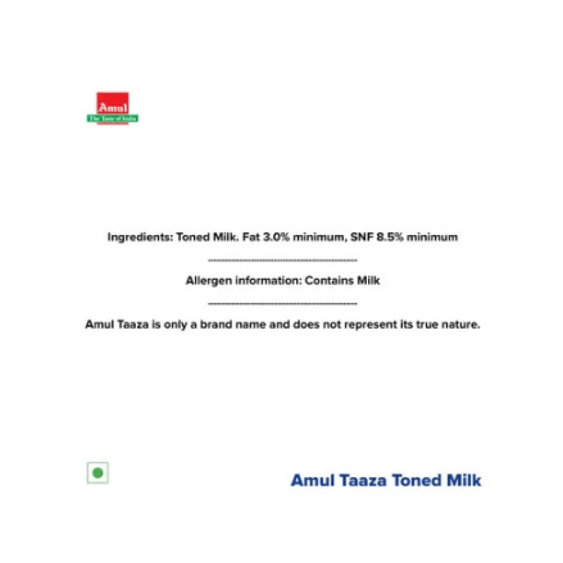 - Product Code: Amul Taaza Homogenised Toned Milk