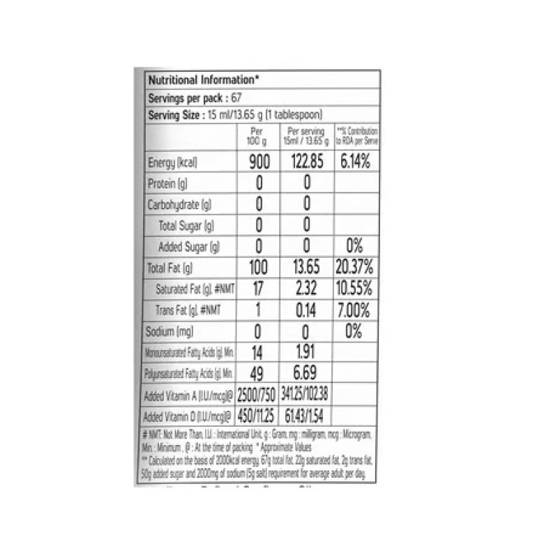 Fortune Sunlite Refined Sunflower Oil is a healthy and nutritious cooking aid that keeps the natural flavour and nutrients of the food intact. The lightweight and healthy formula is ideal for deep frying and doesn’t affect the heart adversely. Enriched with vitamins A and D to keep your body healthy and fit. Has a lightweight formulation that is odourless, thus keeping the natural flavours intact. The nutritious formula helps keep the heart and bones healthy. Also has minerals that are good for the eyes.