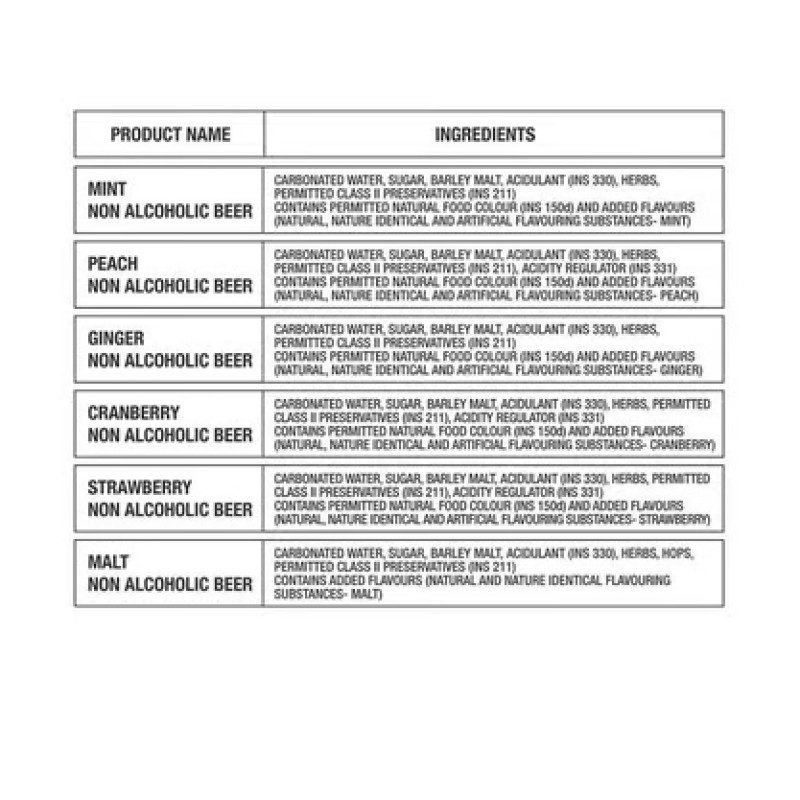 Carbonated Water, Sugar, Apple Juice Concentrate (1.4%), Barley Malt, Acidulant (INS 330), Herbs, Permitted Class II Preservatives (INS 211), Contains Permitted Natural Colour (INS 150d) and Added flavours (Natural, Nature Identical and Artificial Flavouring Substances-Mint)