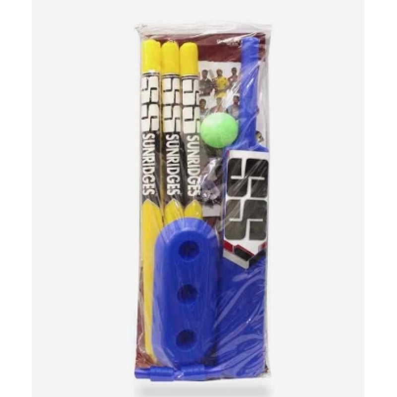 Size 1 for age group 2-5 Years 1 Piece Plastic Cricket Bat 3 Piece Plastic Wickets 1 Piece Plastic Base 2 Piece Plastic Bails 1 Piece Wind Ball