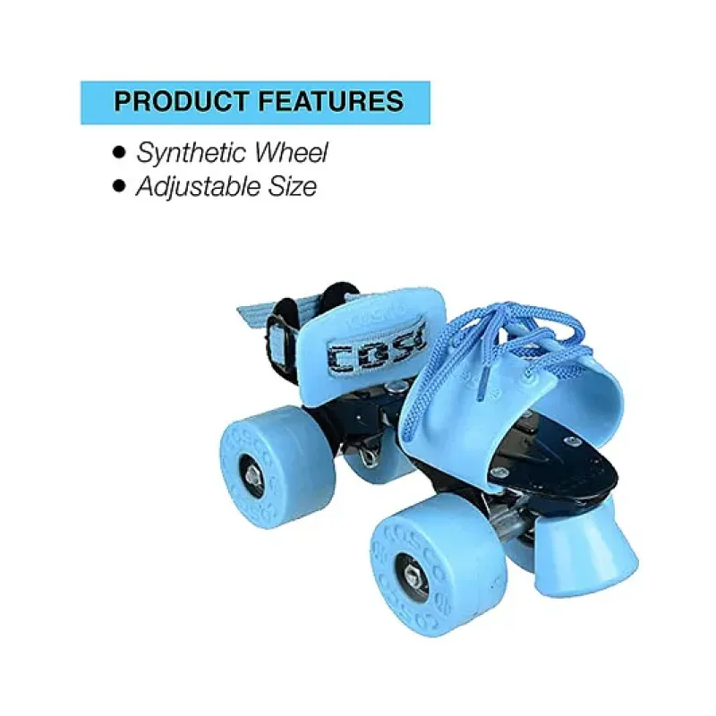 Cosco Roller Skates: The ideal combination of comfort, style, and performance. Our expertly constructed skates provide a snug fit, allowing you to glide with precision and control. Cosco Roller Skates are made of robust materials to provide long-lasting quality, and the adjustable sizing feature ensures a customized fit. These skates are designed with safety in mind, with durable brakes and ankle support for worry-free skating experiences. With Cosco, you can unleash your passion for skating and take your ride to new heights