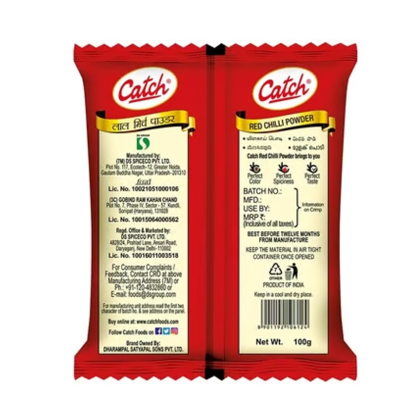 Catch Red Chilli Powder gives a vibrant red colour to your dish. This Indian spice is found in all the kitchens in India. Red chilli powder is one of the most common used Indian masala as it's extensively used in all the Indian cuisines. Catch Red Chilli Powder is made using Low Temperature Grinding Technology, the raw material is sourced from best farms. Red chilli powder is an important ingredient for preparing chutneys, curries, gravies and sauces.