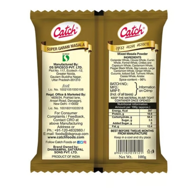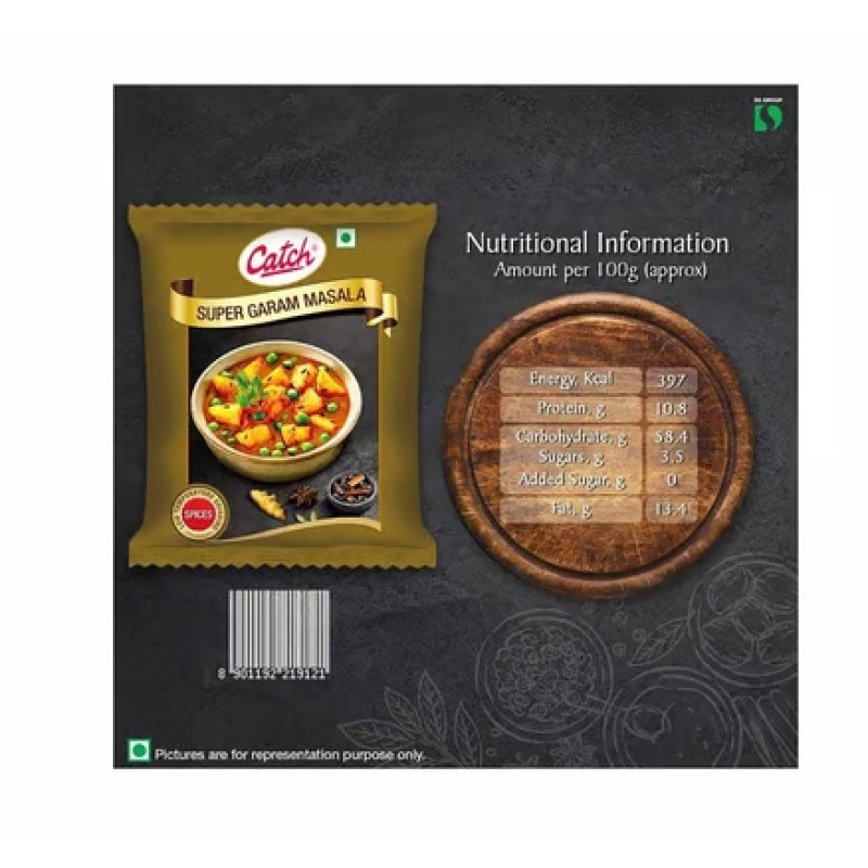 Catch Super Garam Masala is an exquisite blend of rich and premium Indian spices. It adds amazing flavour, aroma and colour to any gravy/curry. It's made with advanced LTG technology which retains the flavour and aroma of spices in their original state. Perfect for Indian-style curries. Super Garam Masala can be used across any Indian cuisine for a powerful punch of spiciness.