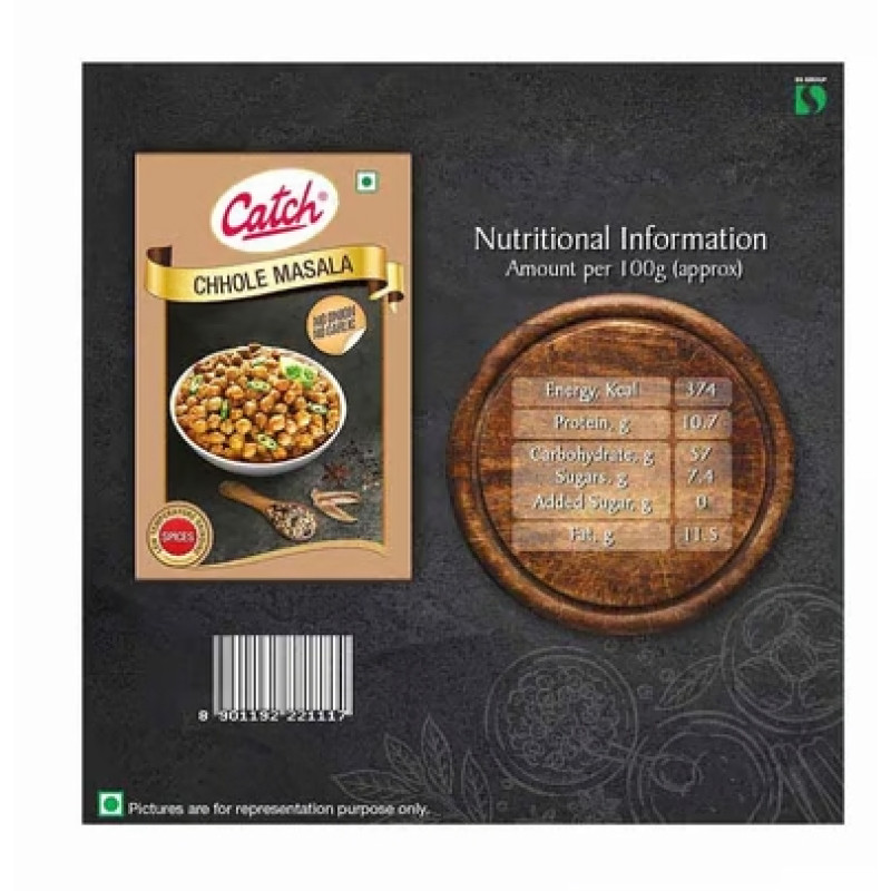 Catch Chhole Masala is a blend of staple Indian spices in the right proportions. Adds lip-smacking taste to your chhole. The delightful aroma and striking colour gives your chhole a restaurant like feel.