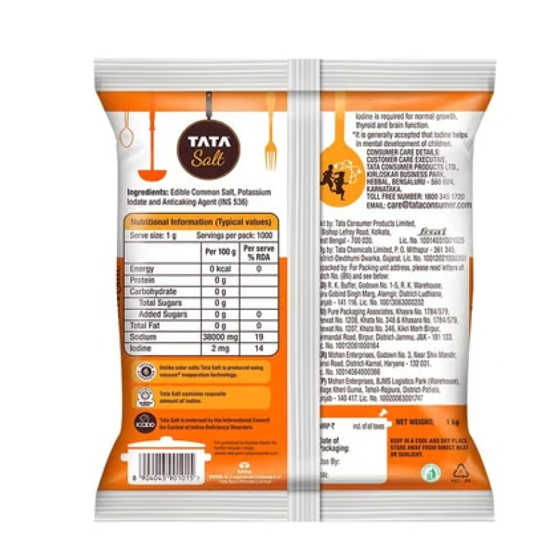 - Product Code: Tata Salt (Vacuum Evaporated Iodised Salt)