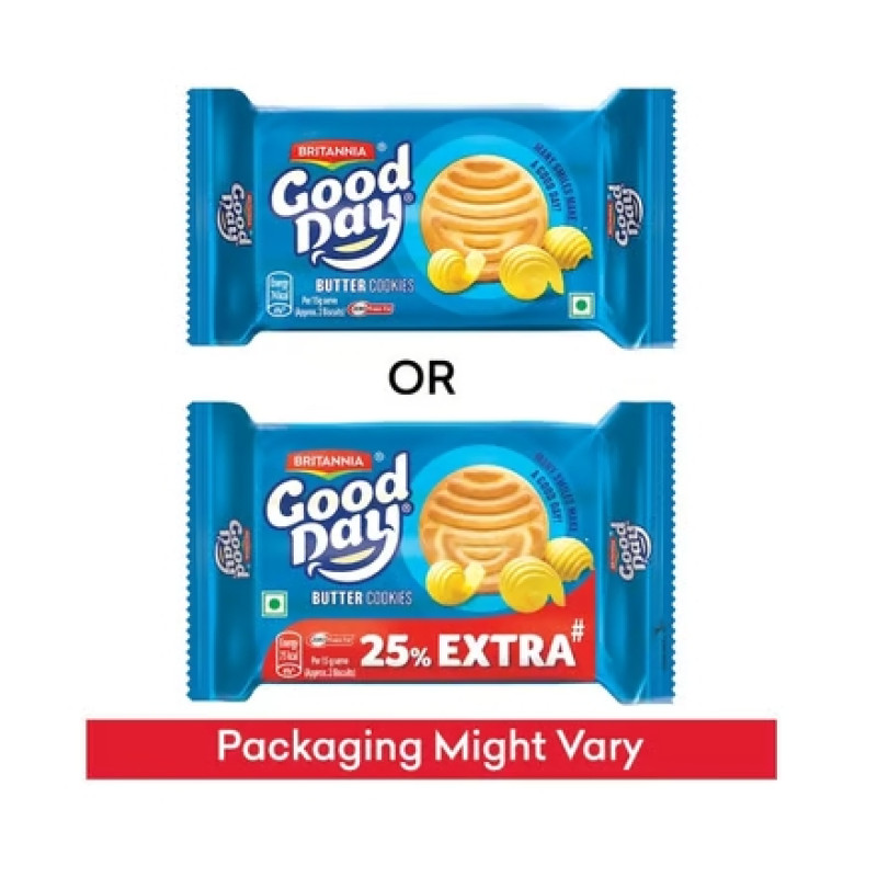 With the goodness of whole wheat and butter, Britannia Good Day Butter Cookie offers a delightful flavour. It is crisp in texture and has a wholesome buttery taste. Perfect for those mid-day hunger pangs, it pairs best with a hot cup of tea or coffee.