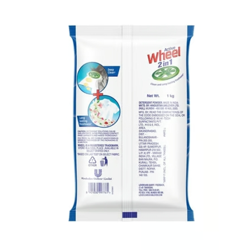 - Product Code: Wheel 2 in 1 Clean & Fresh Detergent Powder 1kg