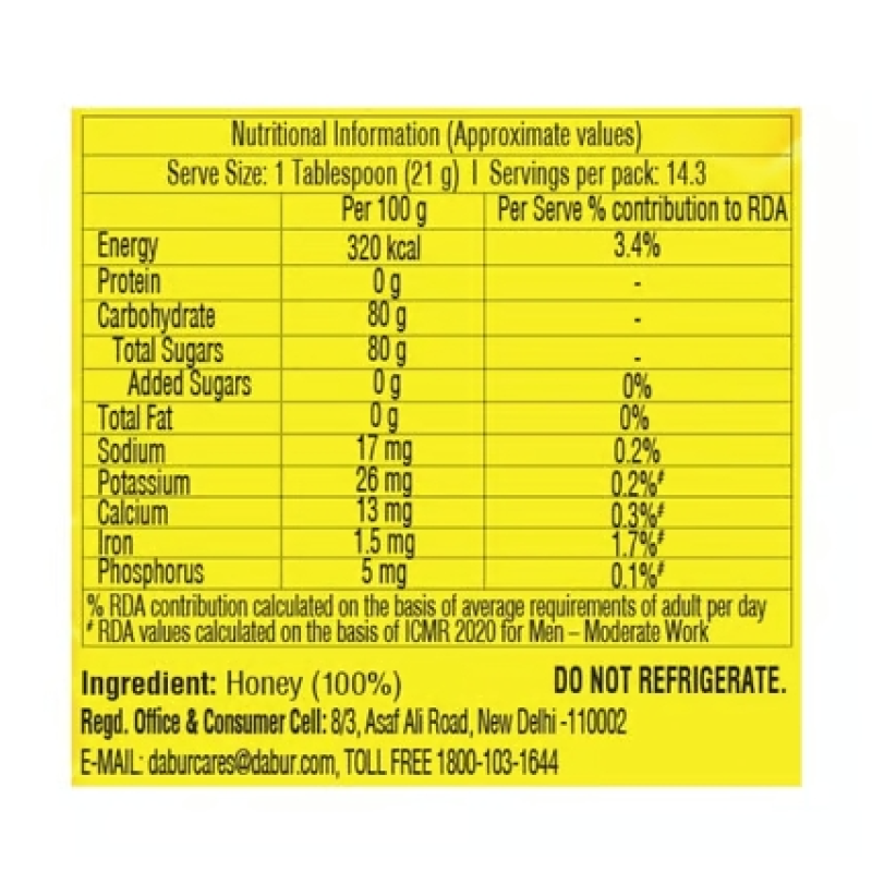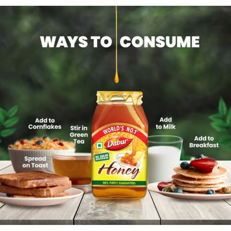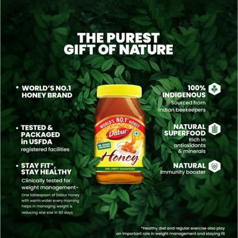 Do you want to boost your Immunity? Do you find it difficult to manage your weight? Do you want to give a healthy start to your day? Do you wish to improve your digestion and metabolism? If the answer to the above questions asked is YES, then you should definitely include Dabur Honey as a part of your daily regime. Dabur Honey is entirely sourced from Indian beekeepers and conforms strictly with all the 22 parameters mandated by FSSAI (Food Safety and Standards Authority of India) for testing Honey. In addition, Dabur Honey is also LCMS - MS tested for zero presence of antibiotics, as further mandated by FSSAI. It is also IRMS tested for zero added sugar and SMR tested for zero presence of rice syrup.
