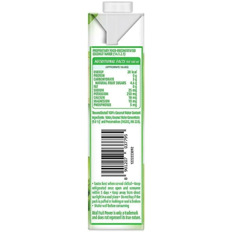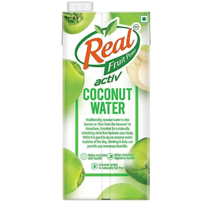 Dabur Real Activ offers tender coconut water which is naturally fat free and low in calories .It is harvested from carefully chosen young , green and tender coconuts . Dabur Real Activ coconut water is packed in a way that it is tasty and nutritious like tender coconut water . It contains no added sugars or flavours . It helps boost immunity and supports hydration . It contains natural electrolytes and helps to maintain Skin and Digestive health .