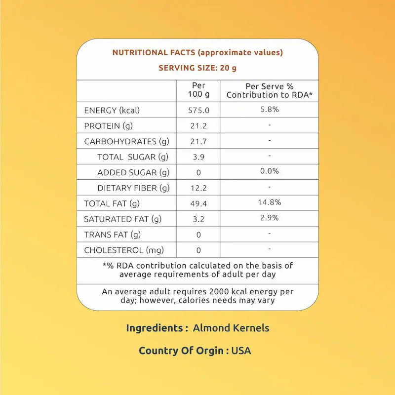 NUTRIENT RICH: Our almonds are known for their nutrient rich content. These almonds boast 6 grams of vegan protein and 4 grams of dietary fibre.