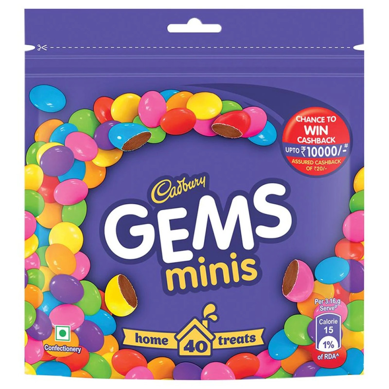 - Product Code: Cadbury Gems Minis Home Treats 126.4 g (Pack of 40)