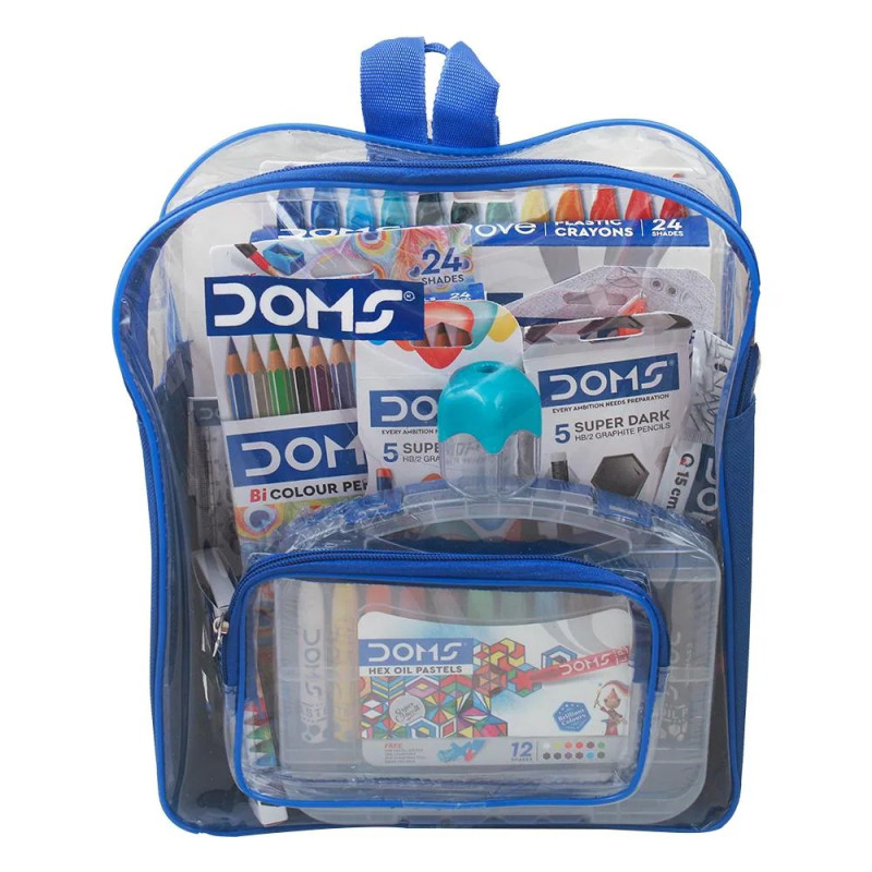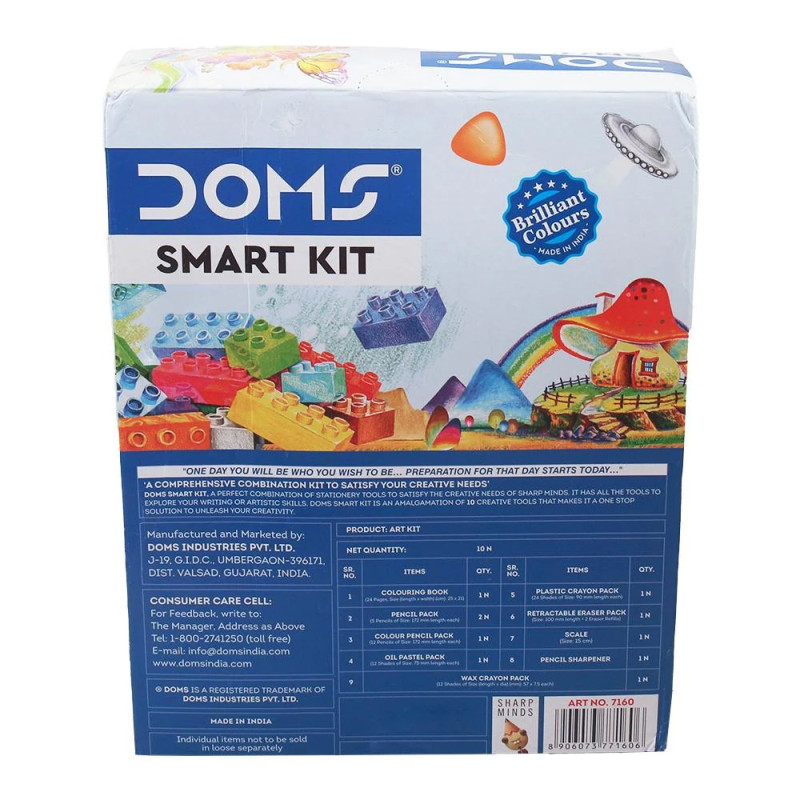 Doms Pencil Smart Kit is a complete kit that caters all the basic art needs of a school kid. The set includes 1 pack of groove triangle pencil, 1 drawing book, 1 mini water colour pen, 25 oil pastels, 12 aqua water colour pencil, 12 jumbo crayons, 1 Q 30 cm scale, 14 plastic crayons, 1 hexagon eraser, 1 car eraser, 1 chalk holder and 1 pack of dustless coloured chalks. Gift your child a complete utility set, buy this product online today!