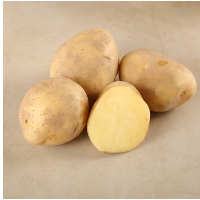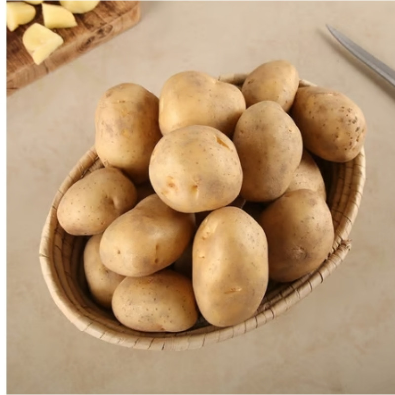 New potatoes have thin, wispy skins and a crisp, waxy texture. They are young potatoes and unlike their fully grown counterparts, they keep their shape once cooked and cut. They are also sweeter because their sugar has not yet converted into starch, and are therefore particularly suited to salads.
