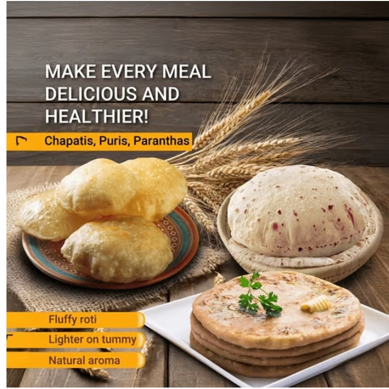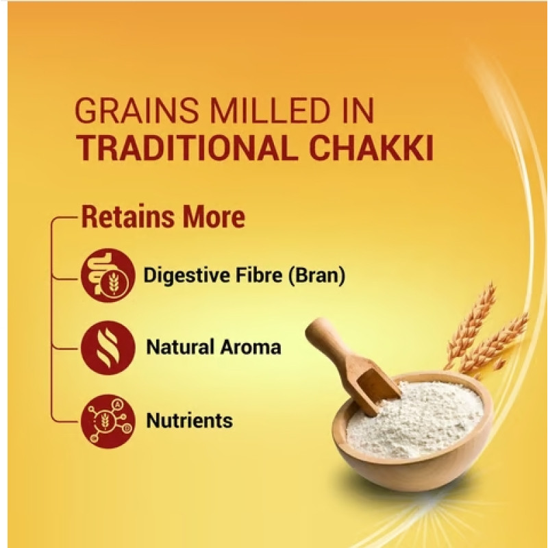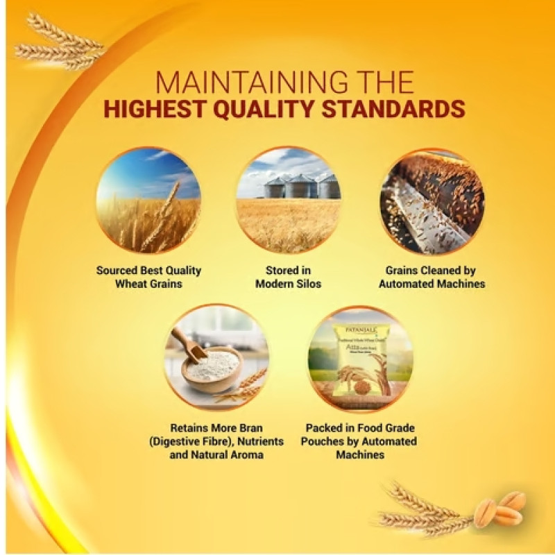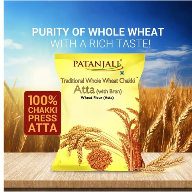 Patanjali Traditional Whole Wheat with Bran Chakki Atta is more nutritious as it contains whole wheat with bran, The hard outer covering of the wheat grain, called bran, contains vitamins B12 and D that are beneficial for your health, Bran is also low in fat and high in dietary fibre to keep you healthy, Whole wheat flour is also rich in complex carbohydrates, and is beneficial for diabetic people, Use it to make soft, fluffy, and delicious rotis and phulkas.